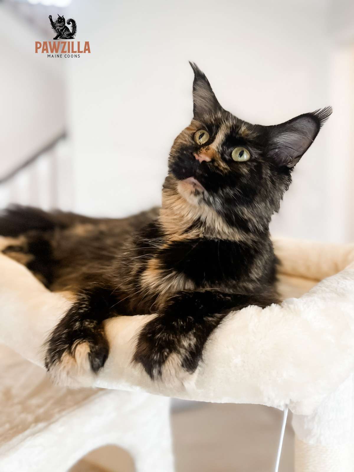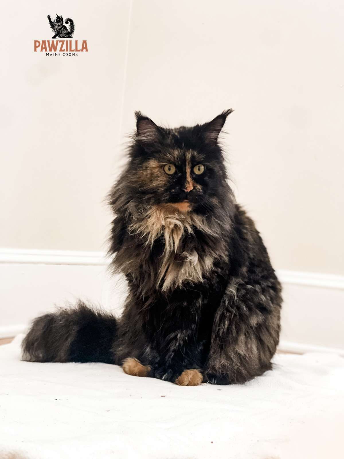 If you take one look at this beautiful girl, there’s no question as to why we purchased her! She is a stunning polydactyl tortie who stole my heart the moment I laid eyes on her. She came to us from Russia, along with her half-brother, Pawzilla I, and Sushi. She took a long flight from Moscow to New York City, and then an even longer car ride from NYC to St. Louis, Missouri, where we lived at the time.