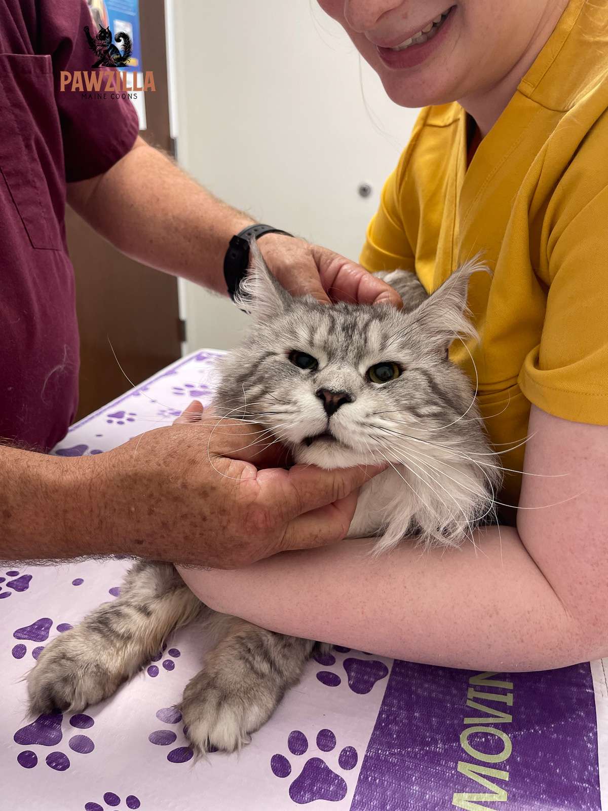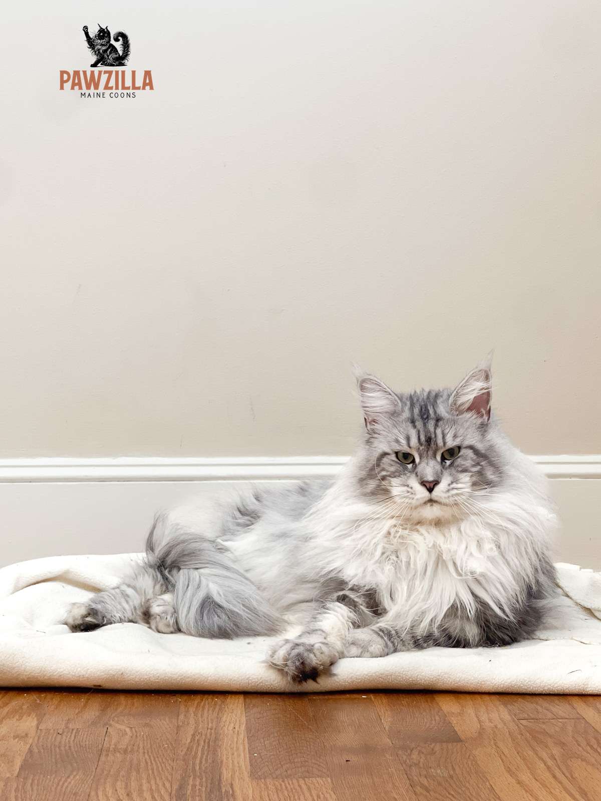 When we lost our first stud, Pawzilla I, we began looking for a new boy, but not a kitten. Yeti immediately caught our eye. He came to us all the way from Russia, flown over by a courier who personally delivered him to our home. The moment the courier handed Yeti to me, my first thought was, “Wow, he’s huge!”